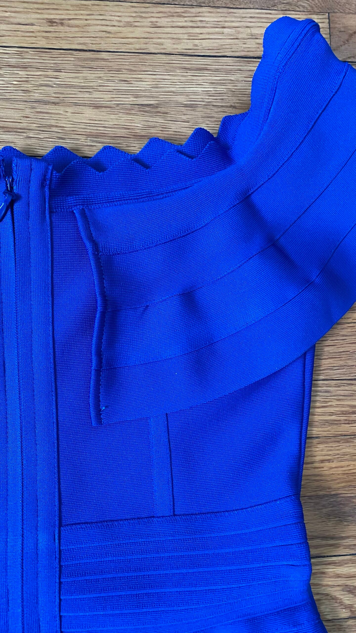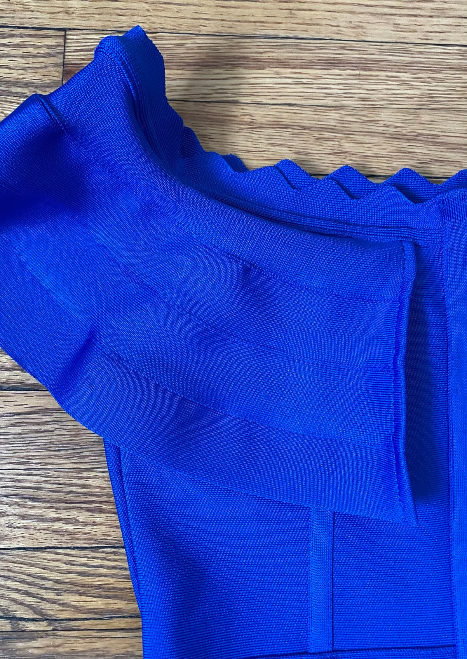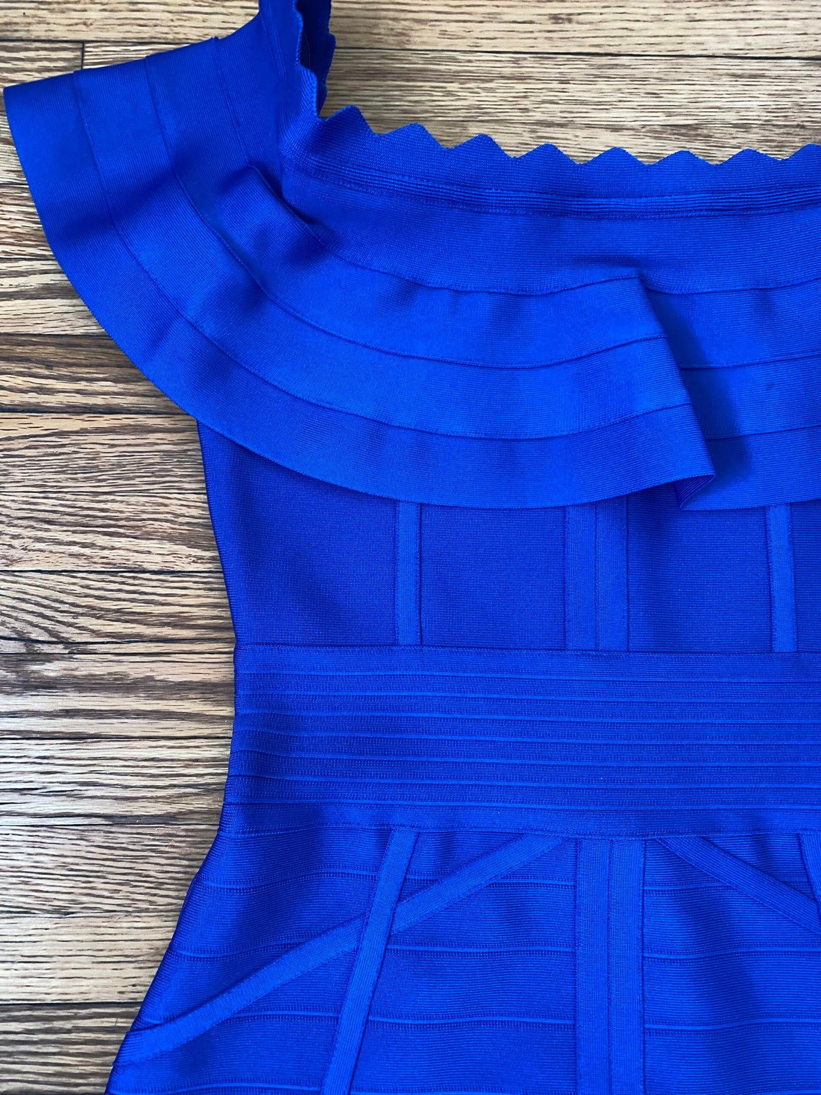 Turn heads in this stunning royal blue off-shoulder bandage dress designed to sculpt and flatter in all the right places. Featuring a graceful over-the-shoulder neckline with soft layered ruffles, this dress highlights the collarbone while adding a touch of feminine elegance. The structured bandage construction hugs the body, creating a smooth, contoured silhouette, while the knee-length cut keeps the look classy and timeless. Perfect for cocktail parties, weddings, date nights, or special events, this dress blends sophistication with modern glamour for a confident, unforgettable look.