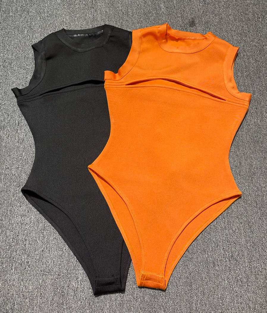 Turn heads in this Sleeveless Open Front Bodysuit designed with a bold slit open front and a sleek button-up panty closure for comfort and ease. Crafted from stretchy bandage material, it hugs your curves for a sculpted, flattering fit. Perfect for statement outfits, nights out, or elevated street-style looks.